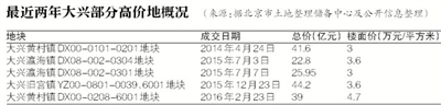 而據北京市國土局土地出讓記錄顯示,大興從去年起已在瀛海、黃村、舊宮等區域出讓了4宗樓面價超過3萬元/平方米的高價地。其中,去年12月23日出讓的大興舊宮鎮地塊樓面價就已經高達3.6萬元/平方米。