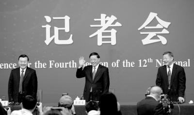 昨天,住建部部長陳政高(中)、副部長陸克華(右)、副部長倪虹出席記者會。京華時報記者陶冉攝