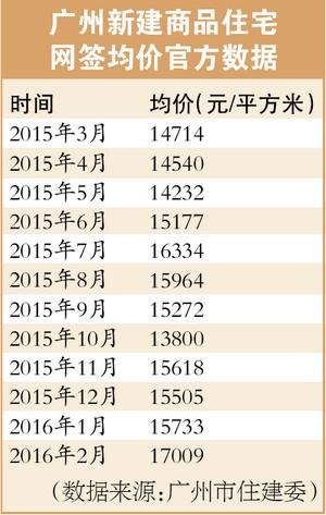 春節過後,廣州樓市穩中向好,3月一二手成交量雙雙突破萬套大關。記者昨日從廣州市住建委最新發布的2月官方數據了解到,2月廣州全市一手網簽均價為17009元/m2,達到18個月來新高。不過,這一數值仍然未達到2014年6月時,全市17047元/m2的歷史峰值。專家分析,廣州常住人口增速回升,加上廣州社會消費品零售總額增速位居一線城市之首,廣州的房價是人口和消費力集聚的正常結果,並不存在泡沫。