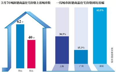 統計顯示,3月份70個大中城市新建商品住宅和二手住宅價格環比上漲的城市分別有62個和54個,分別比上月增加15個和20個。新建商品住宅和二手住宅價格同比上漲的城市分別有40個和46個,分別比上月增加8個和5個。
