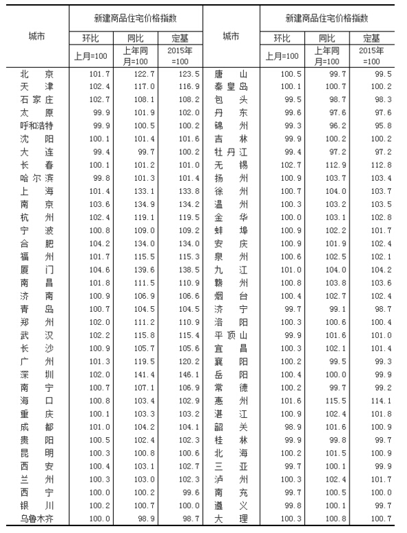 國家統計局18日公布數據顯示,2016年7月份70個大中城市新建商品住宅(不含保障性住房)與上月相比,價格下降的城市有16個,上漲的城市有51個,持平的城市有3個。環比價格變動中,最高漲幅為4.6%(廈門),最低為下降1.1%。與上年同月相比,70個大中城市中,價格下降的城市有11個,上漲的城市有58個,持平的城市有1個。7月份,同比價格變動中,最高漲幅為41.4%(深圳),最低為下降3.8%。