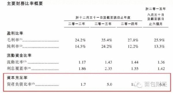 面包財經(微信公眾號ID:mbcaijing)翻查了融信的招股書發現:從2012年到2015年上年半,融信的負債率分別約為:170%、500%、1540%和640%。2015年底的負債率雖然降低到247%,但仍然位列負債率最高的房地產類上市公司之一。以下是面包財經從招股書上摘取的截圖: