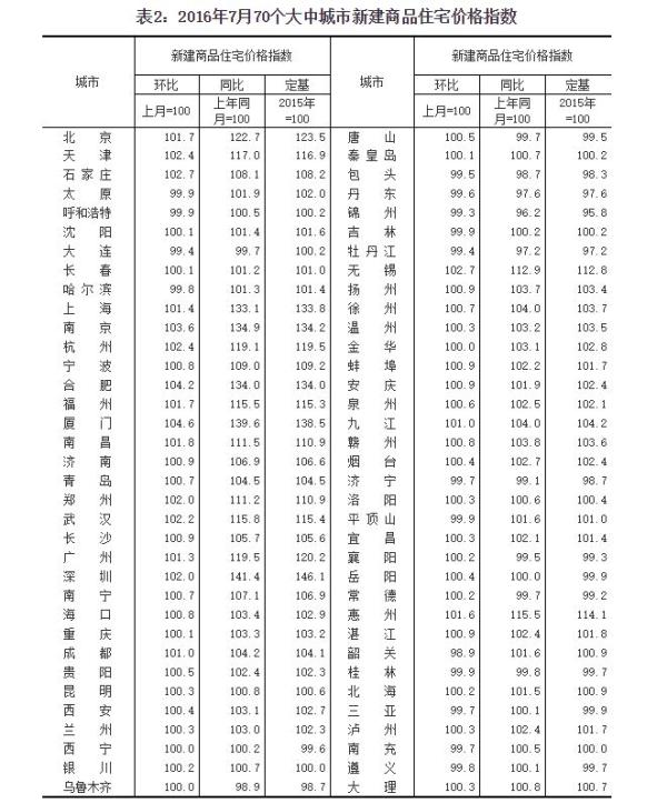 8月18日,國家統計局發布的數據顯示,7月份70城房價有16個城市價格開始下降,比上個月增加6個,上漲的城市有51個(比6月份減少4個),持平的城市有3個。