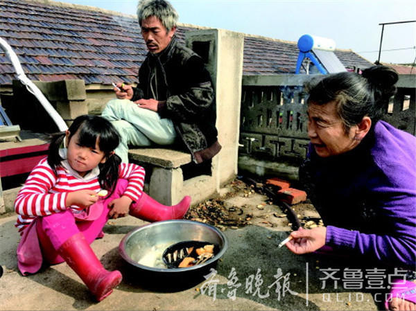 10月25日中午放學後,季紅紅吃著前兩天從臨沂要來的壽司,父母都是煙不離手。齊魯晚報·齊魯壹點 記者 季善文 攝