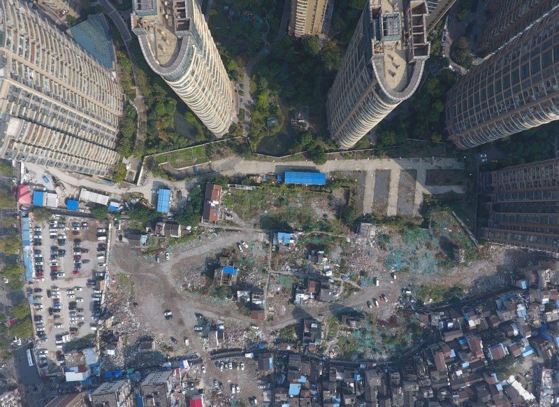 2016年11月28日,上海,普陀區光復里社區,一片垃圾堆般的廢墟中零散佇立著幾棟民宅,這些居民是這塊片區的“釘子戶”。從2014年10月最後一次集體簽約至今,有18戶人家簽約離開,但仍有10余戶堅持不簽約。這片區域是上海市中心僅存的不多的幾塊“寶地”之一,周邊二手房樓價高達每平米7萬元至8萬元。
