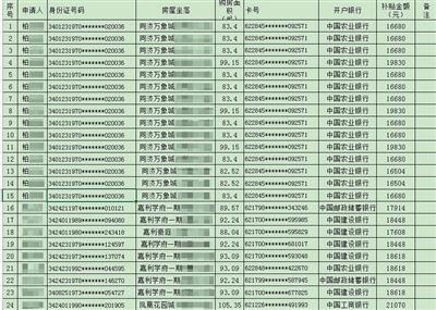 不僅是柏某某,公示名單顯示,身份證開頭同樣為3401的潘某某也在同一小區購買了19套房,粗略計算,如公示通過也可獲得約38萬元的補貼。