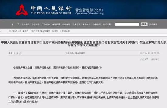 央視網消息:據中國人民銀行網站消息,近日,中國人民銀行營業管理部北京市住房和城鄉建設委員會中國銀行業監督管理委員會北京監管局發布《關于房地產開發企業房地產經紀機構履行反洗錢義務的通知》。《通知》指出,自5月1日起,房地產開發企業在售房、房地產經紀機構在提供二手房買賣經紀服務時,應要求房屋交易當事人購房款以銀行轉賬的方式支付,且必須使用出賣人和買受人的銀行賬戶,通過預售資金、存量房交易資金監管專用賬戶進行資金支付;如發生退款行為,應按原支付途徑,將資金退回出賣人和買受人銀行賬戶。全文如下:
