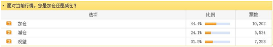 在“您是加倉還是減倉”的調查中,有44.4%的投資者表示已加倉,有24.1%的投資者選擇減倉;而有31.5%的投資者選擇觀望。