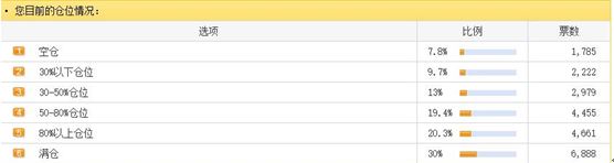 對于目前的持股倉位,50.3%的投資者倉位在8成以上,其中滿倉的達30%;五成倉位以下的投資者達30.5%,空倉的為7.8%。