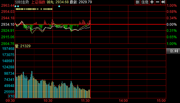 今日早盤兩市雙雙高開,盤中權重股表現相對低迷,次新股漲幅擴大。截至午盤,滬指報2929.79點,跌0.15%,成交883.05億元;深成指報10336.83點,跌0.25%,成交1940.42億元;創業板指報2191.61點,跌0.35%,成交610.03億元。