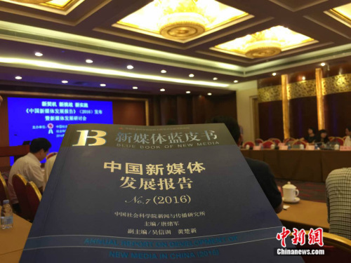 這份報告全稱為《新媒體藍皮書:中國新媒體發展報告No.7(2016)》,報告中收納了,2015年10月中國社會科學院中國輿情調查實驗室在全國范圍的城市居民輿情調查,其中包括對民眾基于手機端的新聞接觸和使用行為調查。