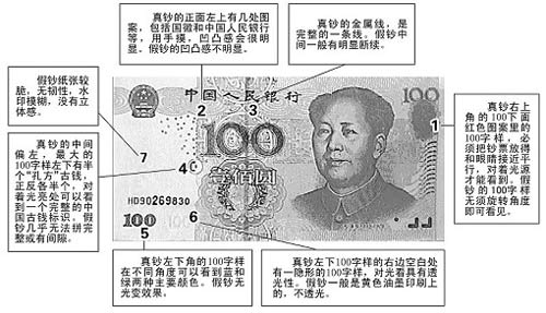 相關專業人士提醒:和真鈔相比,編號為HD90開頭的假鈔,紙張較脆,水印、固定人像均採用無色油墨直接印在紙張正面,水印模糊。最簡單的辦法就是拿出一張真幣進行對比。同時,人民銀行也已及時與公安機關和有關金融機構通報了有關情況,並要求金融機構對點驗鈔機具進行全面排查,防止誤收誤付。