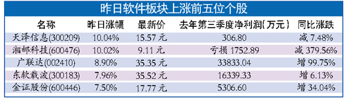 業內人士表示,軟件正版化對保護知識產權,促進科技創新有非常重要的意義。而受此利好消息刺激,昨日整個軟件板塊漲幅較大,除了天澤信息(300209)、湘郵科技(600476)漲停外,另有廣聯達(002410)、東軟載波(300183)以及金證股份(600446)等22只個股漲幅超過了5%,走勢大超大盤。