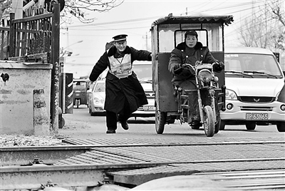 商志忠說,道口員難當,主要是每天要和著急上下班的人打交道。早高峰時,鑽桿、闖桿的事情經常發生,為了行人的安全,他們總是用自己的笑臉去貼人家的冷臉。堵車是這個道口讓人頭疼的大問題,在每天固定列車通過220列的道口,汽車絕不能被堵在鐵路線上。所以,只要看到道口兩邊有堵車,他們就會衝出屋子直接攔截即將開上鐵道的汽車,比交通警都要認真負責。