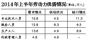 從勞動者就業狀況調查的供需匹配看,人力資源市場供需結構性矛盾依然突出。其中,軟件及IT產品研發人員、工程設計人員等專業技術人員缺口最大,為11.3萬人;其次為服務人員和生產工人,缺口分別為9.3萬人和8.9萬人;行政管理人員供需基本平衡。