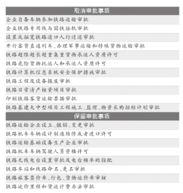 京華時報訊(記者韓旭)昨天,記者從國家鐵路局獲悉,按照國務院統一部署要求,國家鐵路局將公開取消和保留的鐵路行政審批事項。其中,將取消開行客貨直通列車、辦理軍事運輸和特殊貨物運輸審批權,保留鐵路旅客票價率審核權限。據介紹,2013年鐵路實行政企分開,國家鐵路局推進轉變職能、簡政放權,經國務院批準,先後取消11項行政審批事項,目前依法保留8項。