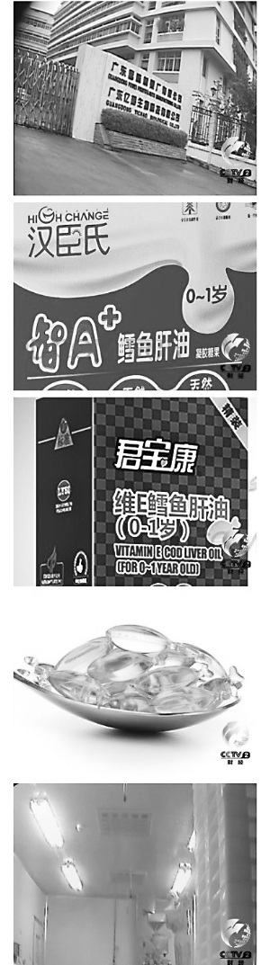 明明是藥品,魚肝油是怎樣變成了針對嬰幼兒銷售的普通食品呢?央視記者在君寶康維E鱈魚肝油的生產車間里看到,工人正在將一桶液體倒入塑料桶。負責人馮經理介紹,這里生產的維E鱈魚肝油中鱈魚肝油只佔60%,剩下的是花生油。而康諾邦公司竟然是用了水產加工品的企業標準,將本應是藥品的魚肝油違規生產成嬰幼兒食品。由廣東汕頭億超生物有限公司代加工的優質鱈魚肝油採用低糖型軟糖標準,產品主要原料是水、葡萄糖、淀粉、魚油等,並不包括魚肝油。據了解,魚油的主要成分是DHA和EPA,魚肝油的主要成分是維生素A和D,魚肝油是一種藥品,億超公司正是利用這一字之差異化節目,冒用魚油的手續將魚肝油加工成嬰幼兒食品。