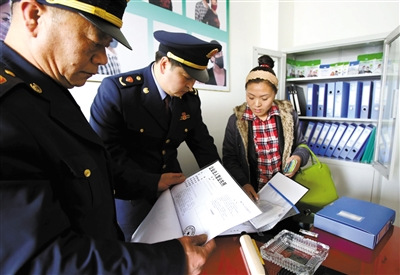 工商執法人員在檢查九頭鷹代理公司的相關證照。