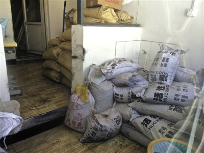 “九頭鷹”納米PM2.5口罩外包裝所標注的石景山高井北街50號,房間里堆滿了活性炭。