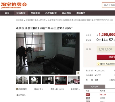 截至昨晚10點,上述三處房產中,只有起拍價為129萬的通州區一房產,有4人報名參加競拍,其中3人出價,領先的競買價格為139萬。而其他兩處房產,均無人參加競拍。豐臺法院拍賣的挖掘機則流拍。