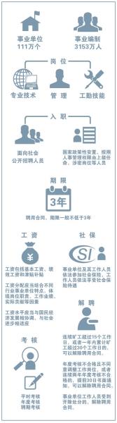 我國現有事業單位111萬個,事業編制3153萬人,根據昨天公布的《事業單位人事管理條例》,我國將建立事業單位工作人員工資的正常增長機制。事業單位及其工作人員應依法參加社會保險。