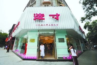 “當時的年輕人,需要攢上一個月工資才能買上一件‘造寸’的服裝。”他說,現在仍定位于中高檔女裝的“造寸”訂制係列,每套價格在三四千元;而店內售價幾百元的紡織成衣,也隨處可見。昨日是“造寸”重裝開業的第一天,店里展示的部分成衣便有了優惠折扣。雖然剛在“造寸”上任一年,但吳盈康也盼著,店里的產品能夠被更多普通消費者所接受,特別是在“造寸”已經囊括近千種女裝款式後,如何擴大消費人群,就成了店里的頭等大事。為此,“造寸”之前佔據的那間不到30平方米的小屋,改裝後就成了“紅都”男裝銷售區,使得“造寸”西四店不再是女性顧客的專屬。