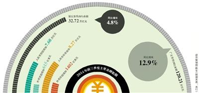 ●2014年前三季度社會融資規模為12.84萬億元,比去年同期少1.12萬億元。