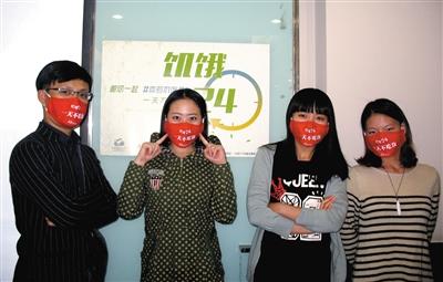 昨日,四名志願者戴上印有“饑餓24小時活動”圖標的口罩,倡議大家體驗饑餓活動支持扶貧。通訊員 金紫南 攝