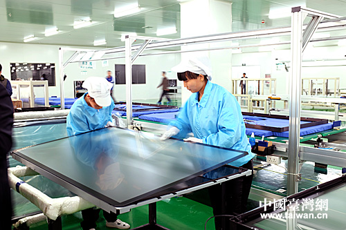 工人們正在進行液晶屏組裝。(中國臺灣網 普燕 攝)