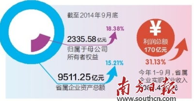 數據顯示,截至2014年9月底,省屬企業資產總額9511.25億元,歸屬于母公司所有者權益2335.58億元,分別同比增長15.21%和18.38%。今年1—9月,省屬企業實現營業收入3080.42億元,利潤總額170億元,同比增長31.13%,凸顯了發展的質量、規模和效益