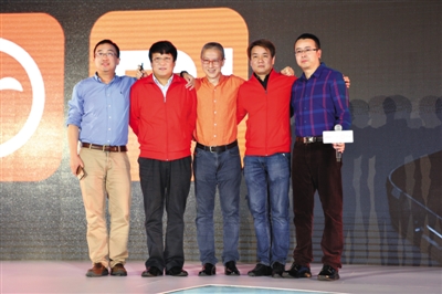 優土昨日在上海營銷會議現場宣布,與小米公司達成合作。小米副總裁陳彤(左二)、優土CEO古永鏘(中)出席了會議。