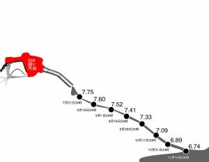 根據目前現行的成品油調價機制,下一輪油價窗口開啟將是在11月28日24時,到底下輪是否還會出現“九連跌”呢?中宇資訊分析師高承莎表示,自6月下旬以來,國際原油市場利空消息頻出,導致原油價格一路下滑,且跌勢難止,導致史無前例的“八連跌”,而從目前來看,甚至還會創出“九連跌”的新紀錄。