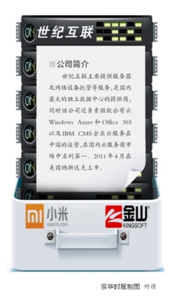 京華時報訊 12月1日,國內最大的雲服務運營商世紀互聯宣布已分別與金山軟件、小米和新加坡淡馬錫簽署股權認購協議,累計獲得2.96億美元投資,其中雷軍係的金山和小米合計向世紀互聯投資2.2億美元。