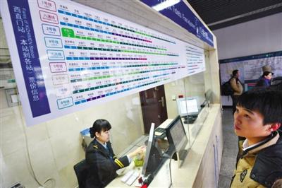 昨日,地鐵西直門站售票處,一名乘客在查看新貼上的價格表。新京報記者 王嘉寧 攝