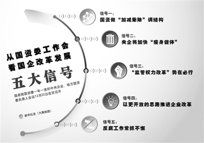 經濟日報北京12月22日訊 (記者 李予陽)國務院國資委22日召開中央企業、地方國資委負責人會議時表示,國務院國資委一年來緊抓頂層設計,重大改革方案制訂取得重要進展。目前,國資委對中央改革領導小組部署的涉及國資委的重點改革任務逐項研究,制訂了初步意見方案。對國企改革的重點和難點問題進行深入研究,形成了解決問題的思路。