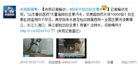 記者暗訪發現,"山東魯抗醫藥"大量偷排抗生素污水,濃度超自然水體10000倍!抗生素亂排濫用並不罕見,南京自來水甚至檢出阿莫西林…全國主要河流黃埔江、長江入海口、珠江都檢出抗生素!有害!這種水,你敢喝嗎?(記者盛雲)