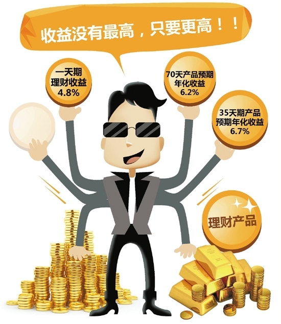 “這還是一周前的事,這周起我們的收益率又上了幾個點。22日起,我們的開放式1天理財‘天添盈1號’收益率達到4.8%。”浦發銀行杭州分行財富管理部總經理郭劍說。