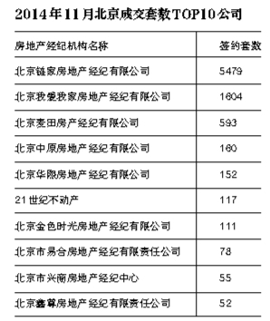 據市住建委公布的11月二手房成交排名,排名第一的鏈家地產共成交5479套,約佔全市總交易量11317套的50%。而此前佔據前五位置的鑫尊地產則以52套排名第10。
