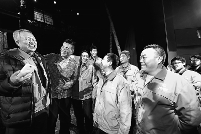 元旦期間,中國國家話劇院邀請城建集團等單位的數百名7號線建設者走進劇場,觀看話劇《長夜》。圖為建設者們與著名演員劉威等近距離交流,親身感受話劇藝術的魅力。本報記者 李繼輝攝