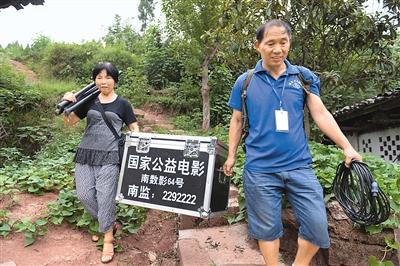 四川省南充市的夫妻放映員,翻山越嶺為鄉親們放映電影。