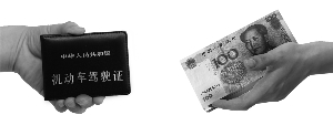 分販子買通負責窗口處理違章的交警後,省去本人現場簽字環節,直接使用他人駕照代扣分,使盜取駕照“頂包”。