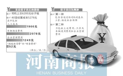 北京規定出租車企業對單班車每月收取份子錢的上限為5000多元/人。有不少出租車企業私自漲價。2013年,有一家出租車公司竟將份子錢一下提高10%以上。