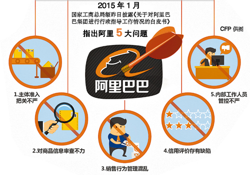 針對淘寶公開炮轟國家工商總局一事,昨日,國家工商總局對外首度披露了2014年《關于對阿里巴巴集團進行行政指導工作情況的白皮書》,指出阿里係網絡交易平臺存在主體準入把關不嚴、對商品信息審查不力、銷售行為管理混亂、信用評價存有缺陷、內部工作人員管控不嚴等5大突出問題。