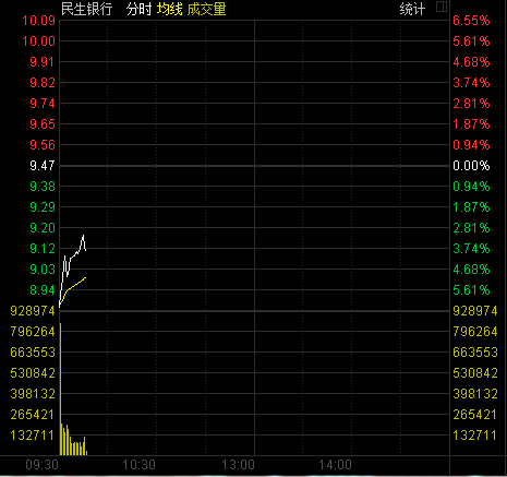 新華網消息 受“黑天鵝”事件影響,民生銀行今日開盤跌6.44%,報價8.86元。截至發稿,民生銀行呈現小幅反彈態勢,跌幅有所收窄。