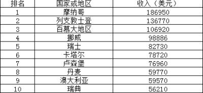 世界人均國民收入前十(截至2012年)制圖:袁天圓