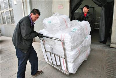 5、包裝入庫:將折疊好的臥具10個一捆、50個一袋包裝入庫,等待發車前取回。