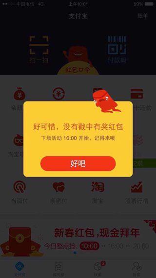 今天上午10點整,支付寶新春紅包雨第一波下達,雖然小編已經第一時間打開支付寶錢包首頁,奈何卻是晴空萬里,沒有被紅包雨淋到!連5毛8都沒戳中!累覺不愛!