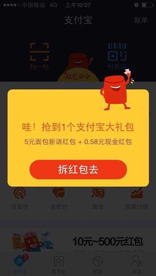 沒關係!這才第一波,就在今天,16:00整和20:00正分別還有兩波“打地鼠”紅包,只要在紅包雨開始的半個小時內登陸支付寶首頁你都有機會,每人持續時間未30秒。