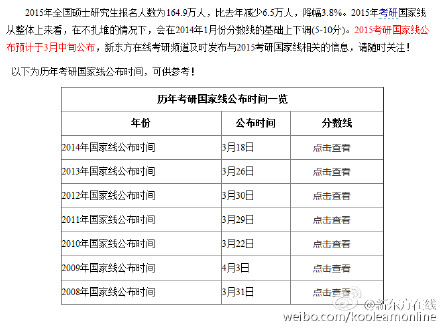 2015考研國家線3月公布成績查詢及後續工作時間安排內容