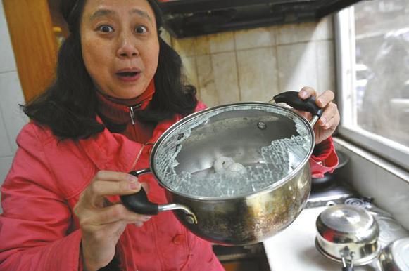 27日上午,胡女士和往常一樣,煮上湯圓做早飯。湯圓煮到一半時,突然聽到“砰”一聲響,瞬時還有許多玻璃碎片向她飛濺過來。“把我嚇壞了!”胡女士驚魂未定,趕緊把火關了。這時,她發現,玻璃鍋蓋已經全部破裂,而鍋里到處是玻璃碎片。